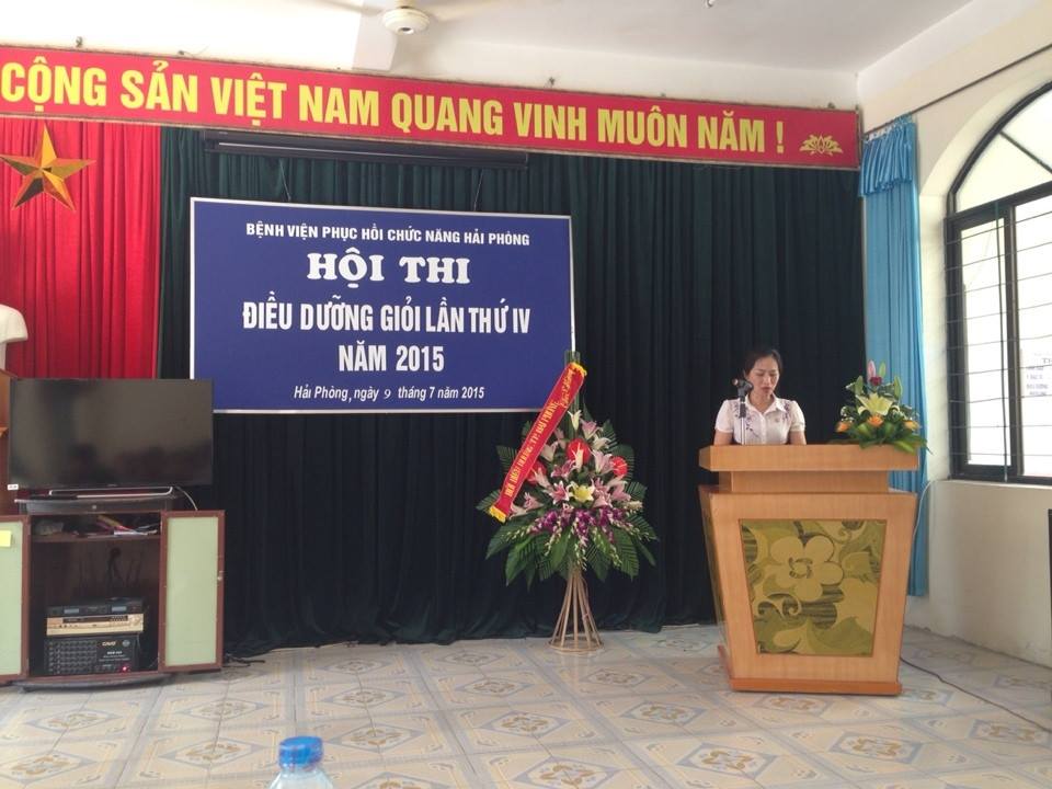 Ngày 9/7/2015, Bệnh viện Phục hồi chức năng Hải Phòng tổ chức Hội thi Điều dưỡng viên giỏi. Đây là đợt sinh hoạt chính trị, chuyên môn của toàn bệnh viện nhằm ôn lại những kiến thức chuyên môn, nghiệp vụ của người điều dưỡng, quy tắc ứng xử của cán bộ viên chức ngành y với bệnh nhân và người nhà bệnh nhân nhằm tạo ra một môi trường làm việc văn minh, lịch sự, ân cần, chu đáo, nhiệt tình. Tất cả điều dưỡng viên của bệnh viện đều hăng hái tham gia. Hội thi cũng đã chọn ra được những điều dưỡng viên xuất sắc nhất vừa giỏi chuyên môn nghiệp vụ, vừa giao tiếp khéo léo để tiếp tục tham gia Hội thi cấp Sở